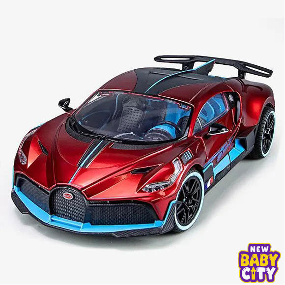 A premium 1:18 scale licensed Bugatti Divo model car featuring pull-back action, realistic sound and light effects, and detailed alloy construction—perfect for collectors and kids alike.