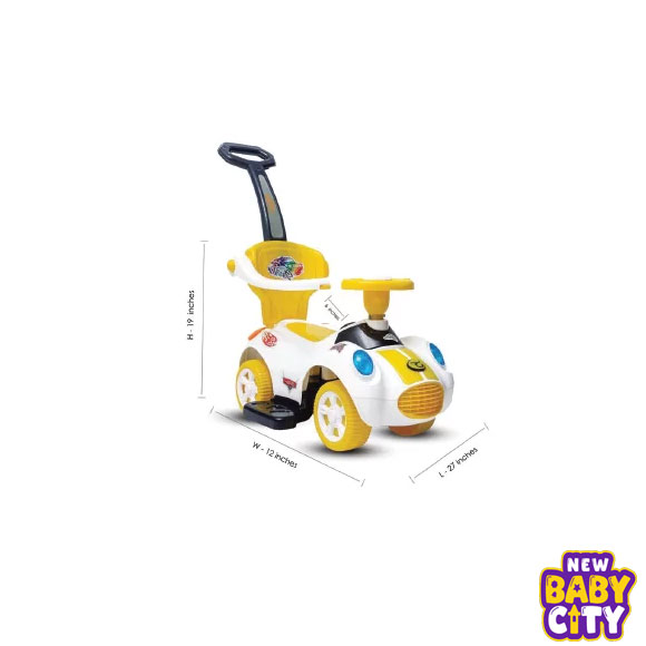 The Mini Stroller Model No. 605 is a multifunctional kids’ ride-on push car-style stroller made for toddlers roughly 1 to 5 years old. It combines the features of a stroller and a push car, allowing caregivers to push and steer while the child enjoys riding. The model includes safety and support handles and a footrest, which are detachable so it can convert easily into a simple ride-on car as your child grows. A musical horn on the steering wheel adds more fun during play. Available in several colour combinations like white-red, white-green, white-yellow, and white-pink, this compact stroller-car toy helps develop early walking and coordination skills while keeping playtime entertaining.