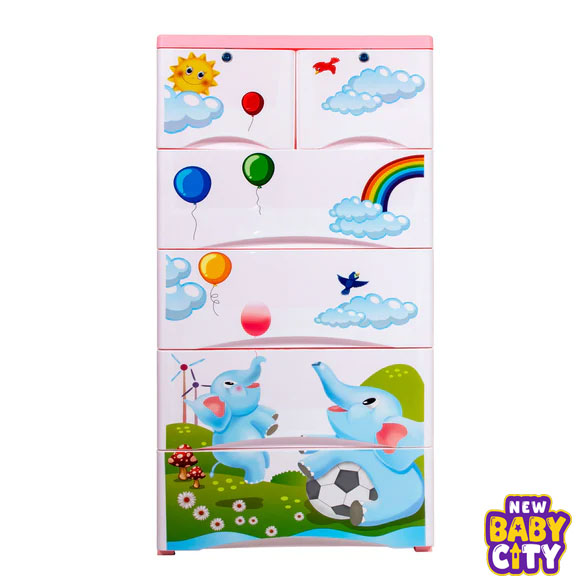 The Orchid Drawer – Elephant Print Pink 4+2 Plastic Cabinet Storage combines practical storage with attractive design, making it a great addition to homes, children’s rooms, playrooms, and closets. Built from high-quality, durable plastic, this multi-drawer cabinet offers 4 roomy drawers for larger items and 2 smaller drawers with locks for valuables or smaller essentials.