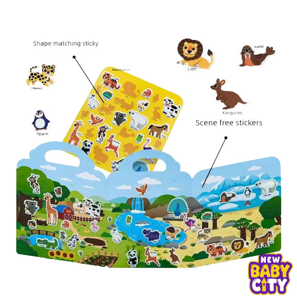 This activity encourages early learning, creativity, and hands-on exploration. Children can match stickers with the correct scenes or design their own fun combinations, helping to develop fine motor skills, hand-eye coordination, and logical thinking.